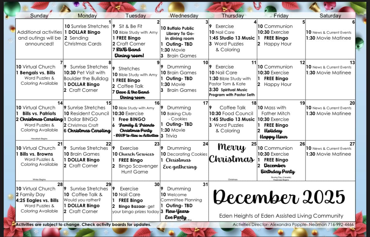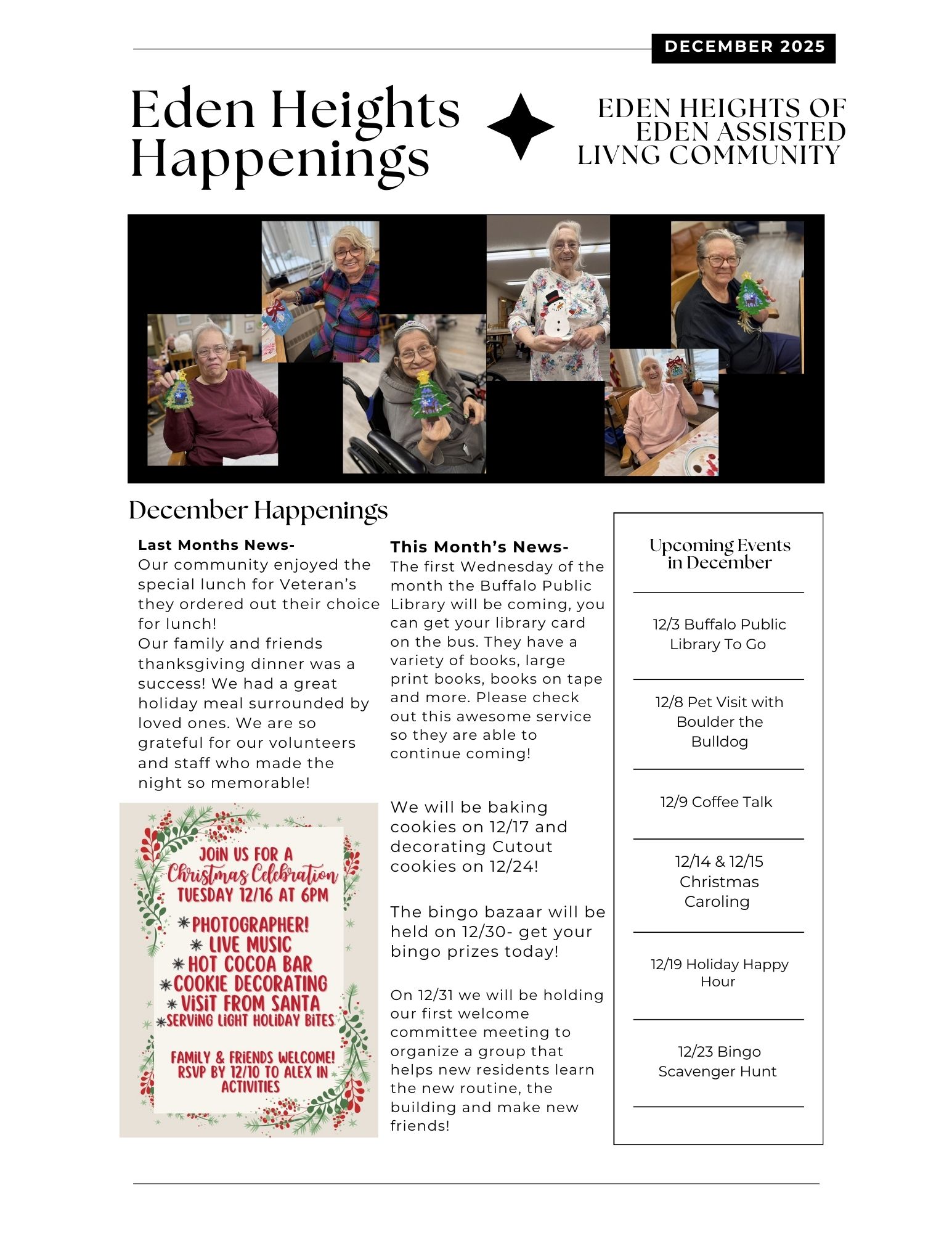 Life at Eden Heights of Eden is meant to enhance our seniors’ lives by providing a cozy, home-like atmosphere with all the advantages of living in an active assisted living community.