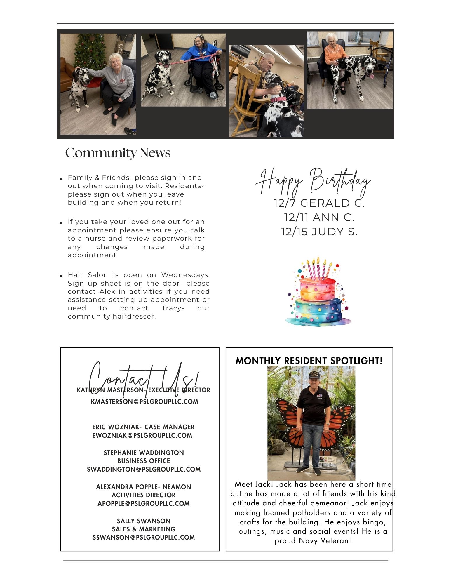 - Petite and Grande Dining rooms for residents to dine with family and friends