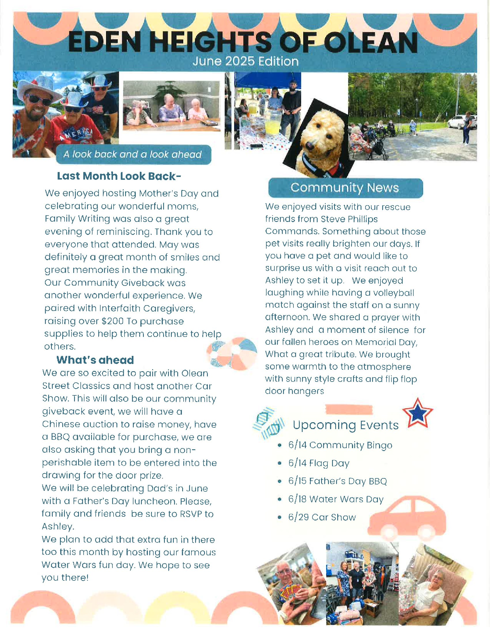 Eden Heights of Olean offers seniors a residential opportunity to focus on independence, friendships, and fulfillment. The particular needs of those with dementia or Alzheimers are met with caring and kind professionalism.